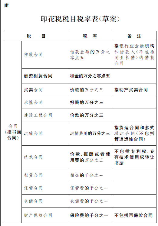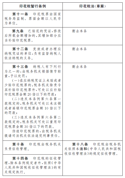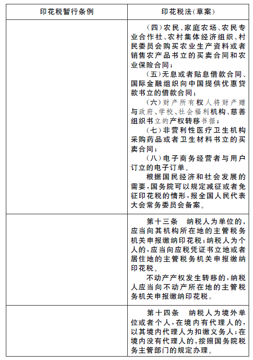這個草案和之前2018年國家稅務(wù)總局對外發(fā)布的征求意見稿又有所變化,財(cái)政部、稅務(wù)總局起草了印花稅法送審稿。司法部充分征求各方面意見,形成了印花稅法草案。