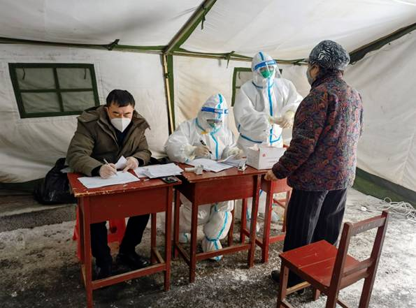 2月20日,吉林省通化市東昌區(qū)調(diào)整為疫情低風(fēng)險(xiǎn)地區(qū)。身著稅務(wù)藍(lán)的通化市稅務(wù)干部爭(zhēng)當(dāng)疫情防控的排頭兵、攻堅(jiān)手,積極加入“黨員突擊隊(duì)”“志愿服務(wù)隊(duì)”,持續(xù)奮戰(zhàn)在抗疫一線。為協(xié)助完成艱巨繁重的檢測(cè)任務(wù),他們連續(xù)奮戰(zhàn)192小時(shí),有的跑腫了雙腿,有的凍僵了雙手……“我們是黨員,應(yīng)該要先上!”稅務(wù)黨員的承諾擲地有聲。