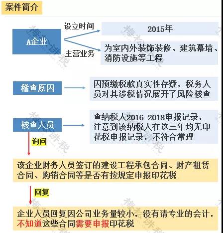 有些企業(yè)認為印花稅是小稅種,交稅少,所以不重視,往往造成漏報、少報;更甚,有的企業(yè)竟不知道合同要交印花稅。殊不知,小小的稅種,卻藏著巨大的風險~~~下面我們來看兩個典型的案例: