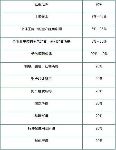 由上表可知,個(gè)人所得稅征稅范圍較為廣泛且稅率普遍偏高,當(dāng)你不創(chuàng)業(yè)、不經(jīng)營公司、不出售房產(chǎn)的時(shí)候,可能只有“工資、薪金所得”與你有關(guān)。而一旦成為了創(chuàng)業(yè)者,你就不能再無視個(gè)人所得稅中其他的征稅項(xiàng)目了。