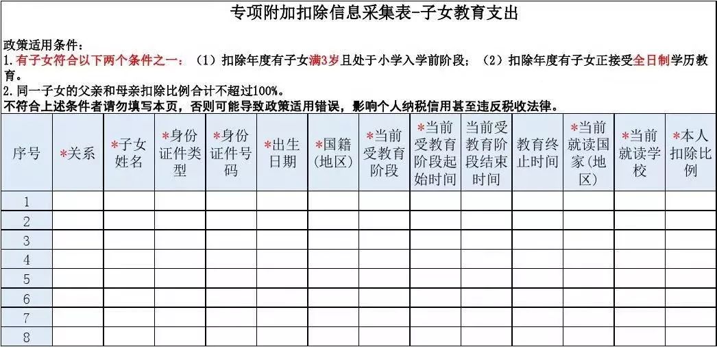 下載專項(xiàng)附加扣除信息采集表——子女教育支出電子模板,填寫好發(fā)送給公司財(cái)務(wù)。