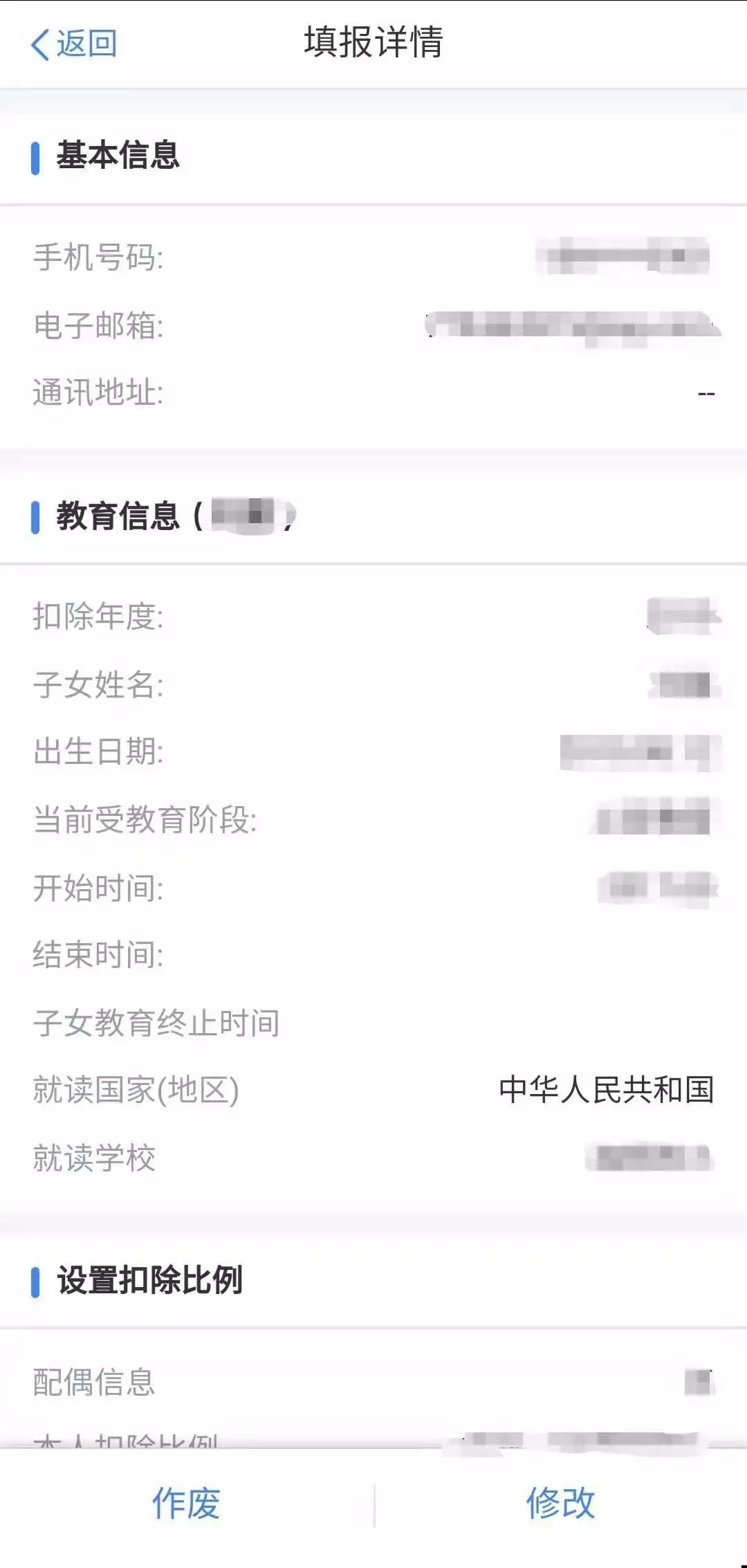 4.填寫配偶信息,選擇扣除比例。
