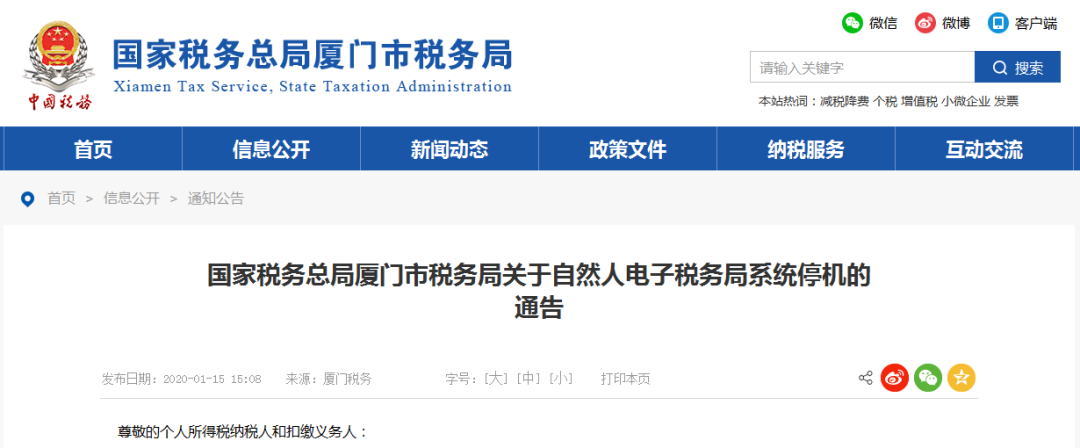 國家稅務(wù)總局廈門市稅務(wù)局關(guān)于自然人電子稅務(wù)局系統(tǒng)停機的通告 尊敬的個人所得稅納稅人和扣繳義務(wù)人:
