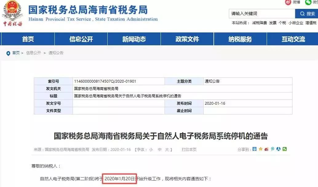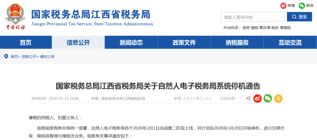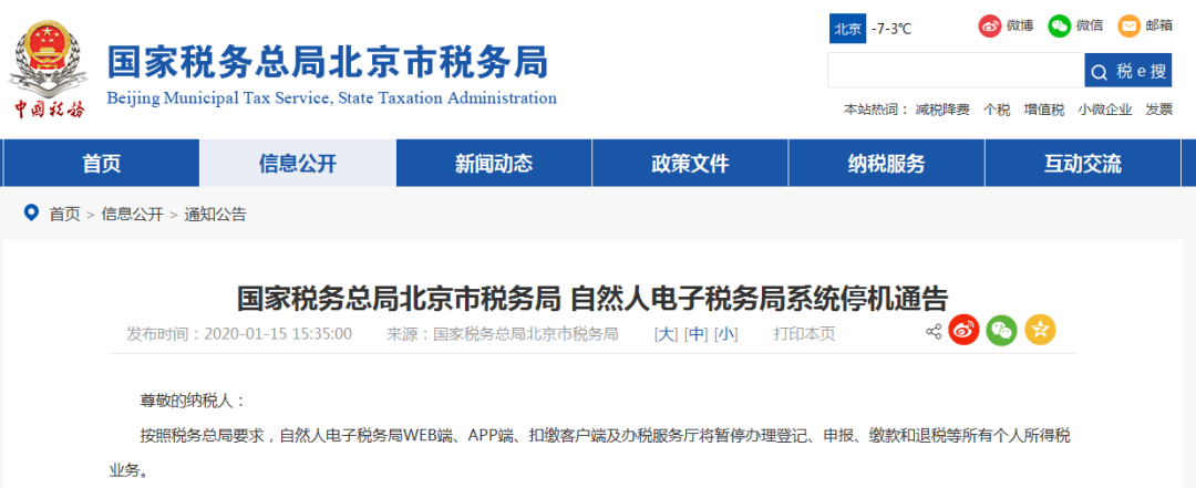 2020年1月20日17時開始,WEB端、APP端、扣繳客戶端、辦稅服務(wù)廳及自助終端將暫停辦理登記、申報、繳款、退稅、證明等所有個人所得稅業(yè)務(wù)。
