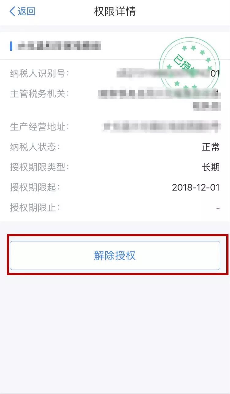 被授予辦稅權(quán)限的辦稅人員,在自然人辦稅服務(wù)平臺(ITS)APP端,點擊【個人中心】——【我的辦稅權(quán)限】,即可查看當前授權(quán)企業(yè)列表和授權(quán)狀態(tài),在【已授權(quán)】頁面點擊您需要解除授權(quán)的企業(yè)名稱,跳轉(zhuǎn)至【權(quán)限詳情】頁面,點擊【解除授權(quán)】,即可解除并刪除該條信息。