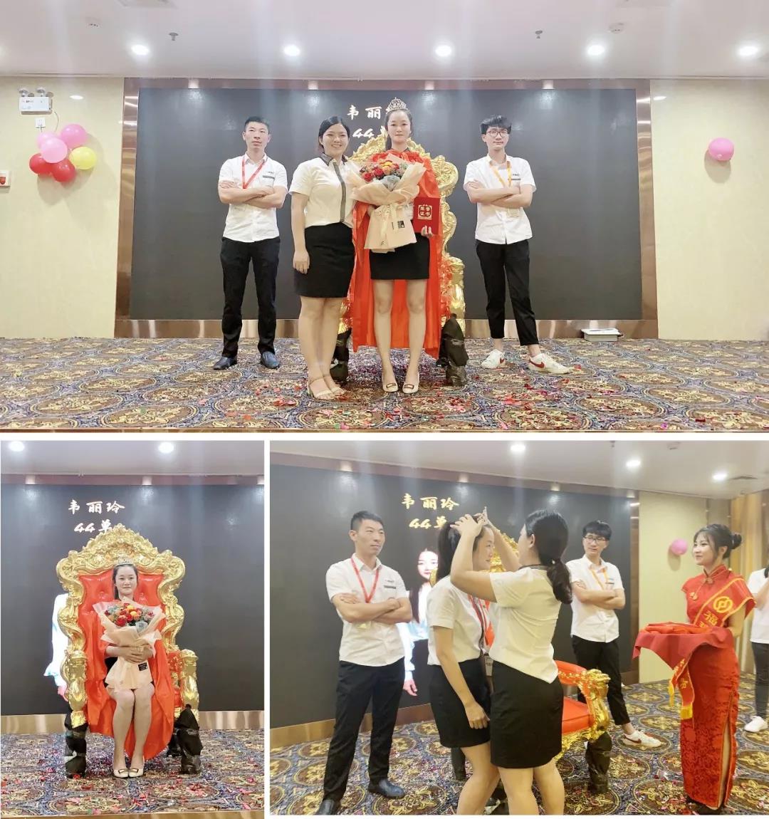 月度銷售冠軍是頒獎是此次啟動會的重點環(huán)節(jié)之一,公司卓越的業(yè)績離不開業(yè)務(wù)部門的奮力拼搏,榮獲7月份銷售冠軍的是來自業(yè)務(wù)部的負責人韋麗玲。公司特意為其舉辦了隆重的登基儀式。公司特別為其舉行了隆重的“皇上”加冕儀式:擁護登基,頭戴皇冠,紅袍加身,同是全體一起喊:“女王陛下萬歲萬萬歲”!
