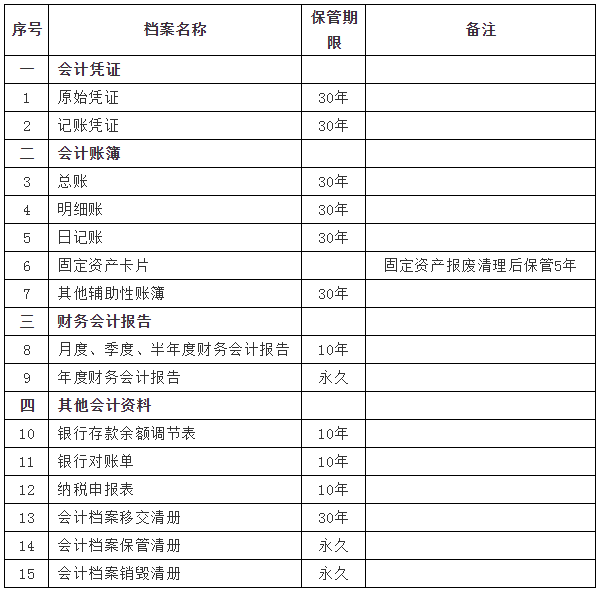 《企業(yè)和其他組織會(huì)計(jì)檔案保管期限表》